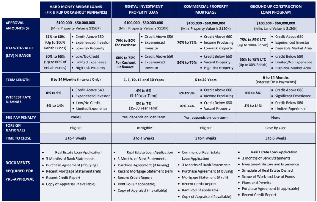 We help seasoned and beginner real estate investors by providing short-term mortgage solutions to acquire fix and flips, rental properties, rehab, or refinance commercial properties all across the United States